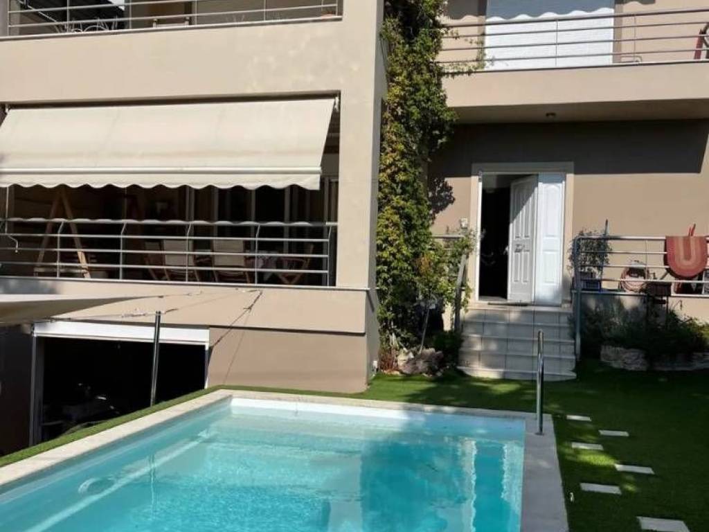 Kalyvia Thorikou, Lagonissi: Luxury house for sale 310 sqm on the blue coast, 3 levels on a plot of 300 sqm with pool and distance from the sea 500 meters. It consists of 3 bedrooms, 2 lounges, 2 bathroom Gaggenau & Neff devices, indoor parking and exterior covered, tile floor, oil heating and autonomy per floor, awnings, aluminum, screens, lift no. Price 670,000 € Property Code: #6647