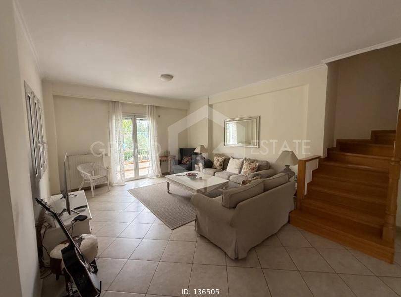 Lykovrysi, Agia Irini - Maisonette 206sqm bedrooms 5, master bedroom, levels 4, ground floor - 1st - 2nd - attic, excellent condition, year built 2004, energy class D, living room, hall, kitchen, 2 bathrooms, 2 wc, heating type: autonomous (oil), air condition, parking covered, quiet, dual aspect apartment, luminous, unobstructed view, frontage, painted, storage space, fireplace, balconies, large balconies, garden, aluminum frames, double glazed windows, wood & tile floors, secure door, internal staircase, barbeque, within city plan, residential zone, eastern orientation, access from asphalt, close to entertainment (up to 500m), close to square (up to 200m), close to sports facilities (up to 100m), close to school (up to 50m), close to banks (up to 500m), close to bus stop (up to 100m), close to market (up to 500m), close to super market (up to 200m).
