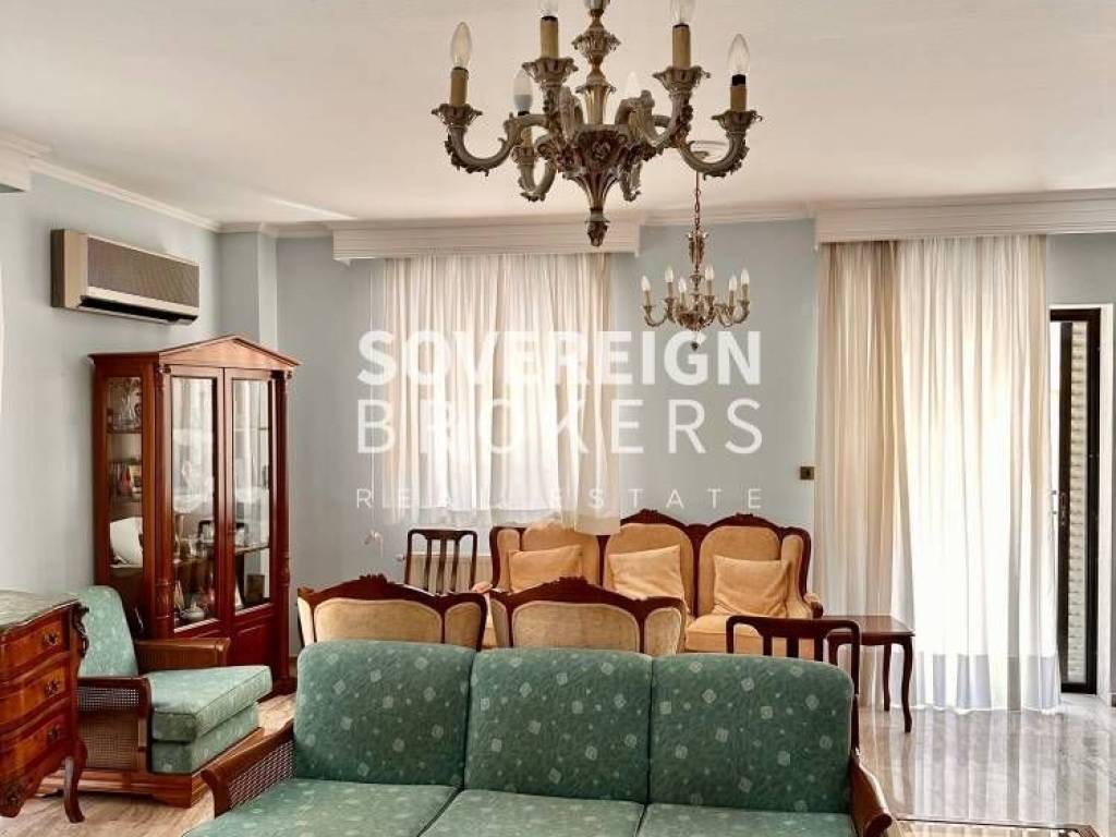 An exceptional housing opportunity in the heart of Neapoli: a corner, through-apartment with a total surface of 115 sq.m. (net surface 95 sq.m.) is available for sale on the 3rd floor of a building with elevator. The apartment is bright and airy, with a dual orientation (east and north) and features a large, corner wrap-around balcony of approximately 35 sq.m..
