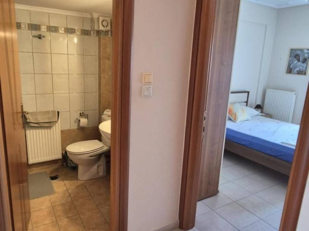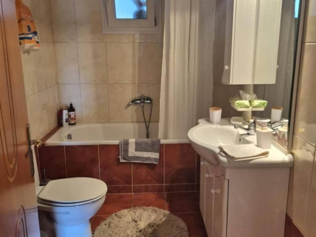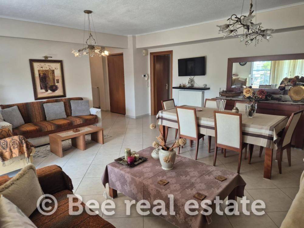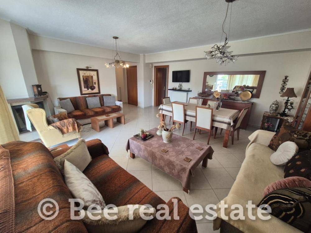 For sale a wonderful 130 sq.m. apartment in the center of Perea! Airy and sunny residence, consisting of a huge living room, separate kitchen, three comfortable bedrooms & two bathrooms. Comfortable front balcony with a view of the open space. It has individual gas heating, an energy fireplace and 3 air conditioners. Tiled roof with insulation in excellent condition. Private garage of 15 sq.m. and an additional outdoor parking space. Private storage room of 25 sq.m. in the basement of the building. Fully renovated and furnished, like new! You enter with the key in hand. It is characterized by the comfort of its spaces, the quality of its construction and its location! Ideal for owner-occupancy or even investment!! It can also be divided into two independent apartments, as it was designed to be so from the start. The first apartment will be approximately 50 sq.m and the second 80 sq.m.