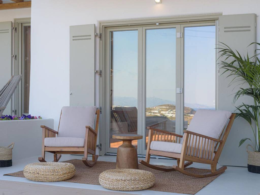 Located on a hillside just a short stroll (750 meters) from the sea, this beautiful villa offers a perfect escape where luxury meets calm. You’ll wake up to stunning views of Kalafatis beach’s golden sand, the unique Divounia rocks, and the peaceful natural surroundings of Mykonos. With 185 m² of living space, this independent villa feels like a true summer home. It’s designed with comfort and style in mind, where every detail—from the inside to the outside—has been carefully thought through to create a relaxing, elegant atmosphere. It’s just 20 minutes from Mykonos Town and the airport, and a quick drive to the charming village of Ano Mera, where you’ll find cozy tavernas, a monastery, and everyday essentials like a market and pharmacy. Plus, some of the island’s best beaches—Agia Anna, Elia, Lia, Kalo Livadi, and Ftelia—are all within easy reach. The villa has five bedrooms with their own bathrooms—four in the main house and a separate guest room with its own entrance—so there’s plenty of space and privacy for everyone. Inside, the style is modern but comfortable, with quality furniture, top-notch appliances, and smart tech like a great sound system and security alarm. Outside, the big private pool is the heart of the home, surrounded by palm trees and blending beautifully with the endless blue of the Aegean Sea. There’s plenty of space to eat outdoors with a table for ten, a stone BBQ bar, cozy built-in seating areas, and sunny spots to lounge and soak up the Mykonian sunshine. Set on a private 1,300 m² plot with lovely gardens and parking for four cars, this peaceful retreat is everything you want for a relaxing, stylish stay in Mykonos—comfort, beauty, and the kind of quiet luxury that lets you truly unwin Location: Mykonos is an island located in South Aegean and is part of Cyclades Islands. The island is one of the most developed tourist destinations in the world and is distinguished for its intense and lively nightlife. Unique Features: Mykonos is a cosmopolitan and glamorous island attracting a large number of Greek and foreign Celebrities who choose the island for their summer holidays. At the same time, characteristic features of Mykonos are its picturesque beauty that anyone can enjoy by walking in its alleys, its wonderful beaches, its luxurious hotels and restaurants. What makes it so special is the fact that it satisfies all requirements, offering visitors who love nightlife a multitude of bar options but on the other hand every visitor can discover the rich history of the island, sightseeing and archaeological sites. Accessibility: Mykonos is accessible from the port of Rafina and Piraeus, ferries depart several times a day and during the summer season at least three ferries depart in the morning and one or two in the winter. Also, Mykonos can be reached by plane as the island has an Airport with several flights operating mainly during the summer period when demand is high. Investment Opportunity: Buying property in Mykonos is a huge investment with a continuous and growing investment interest as it attracts tourists and investors from all over the world.
