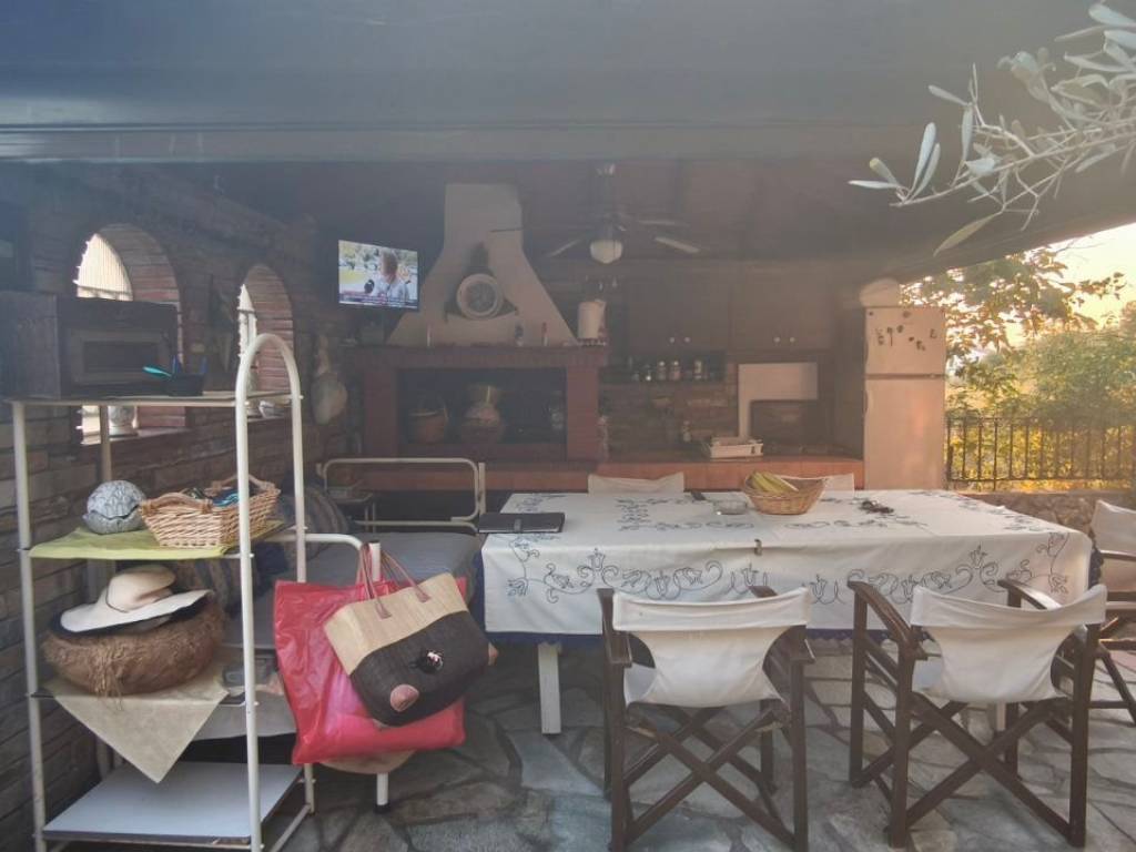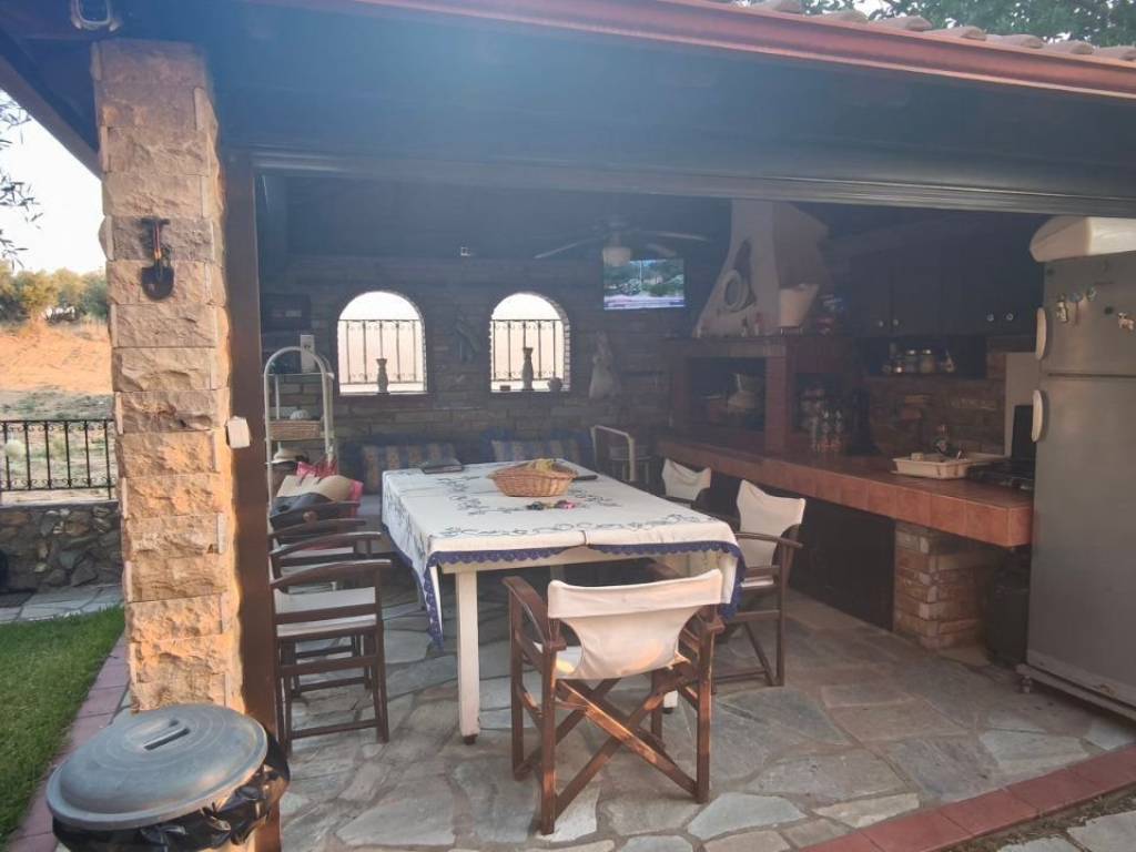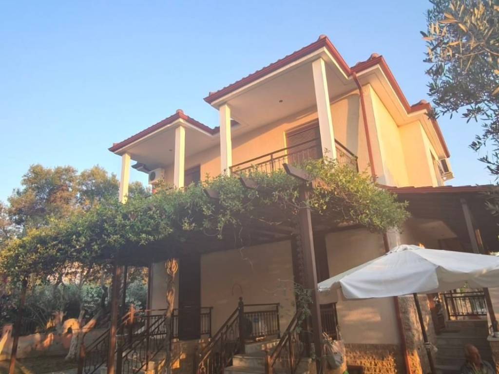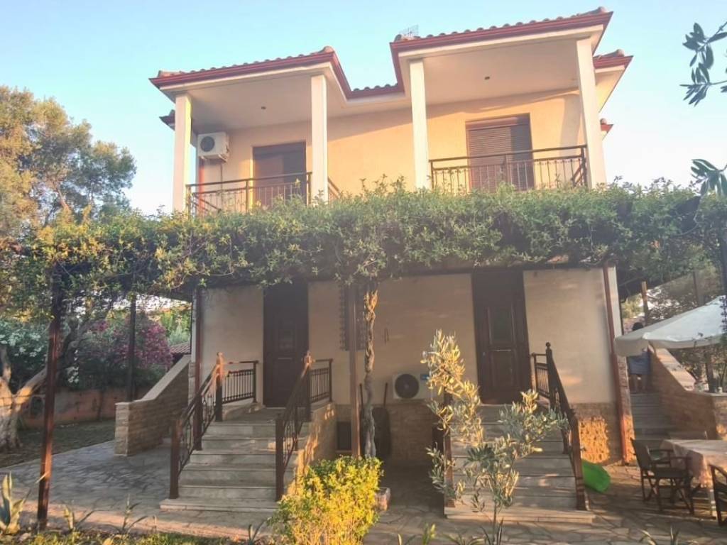 For sale Detached house in Agios Georgios, Halkidiki, 350 meters from the sea, 1000 meters from large supermarkets. It consists of three levels with 4 bedrooms, each room has its own balcony, 3 wc and 2 bathrooms. Living room with kitchen on the mezzanine and a full kitchen in the outdoor gazebo where the grill is located. It is in a lush green landscape with natural tranquility.