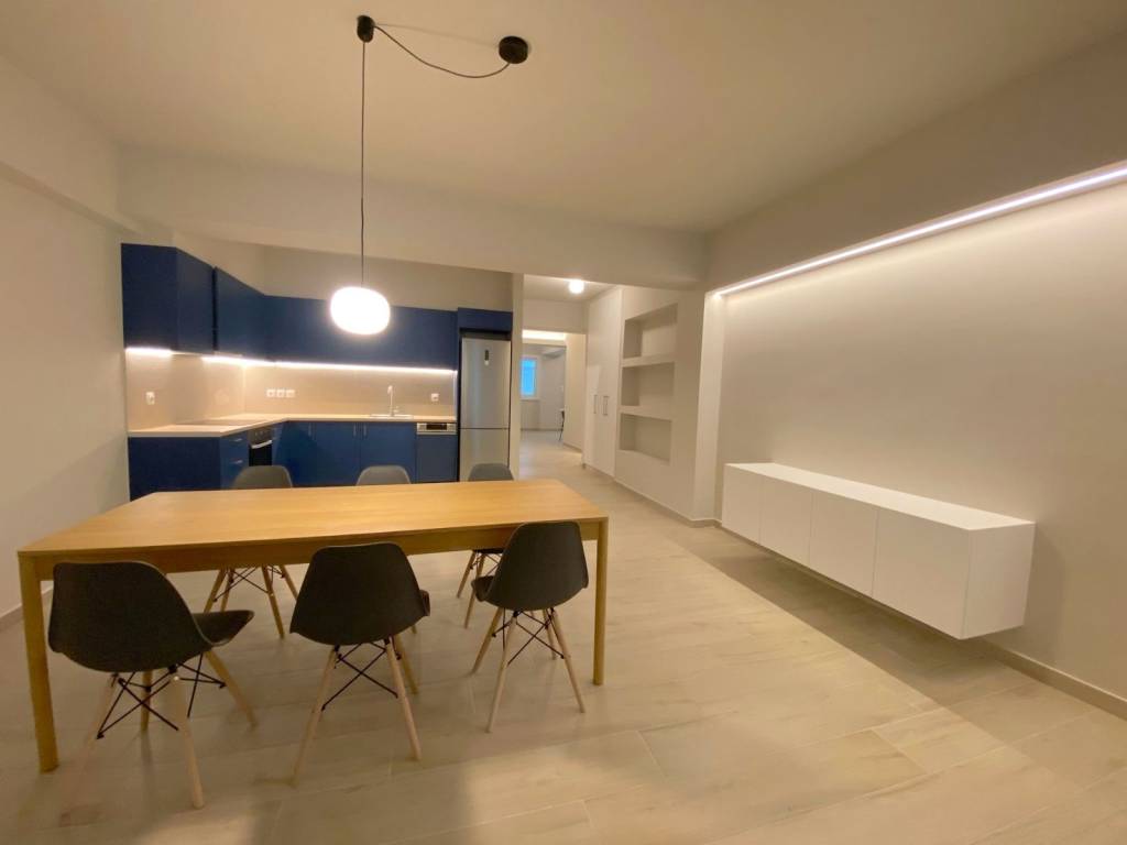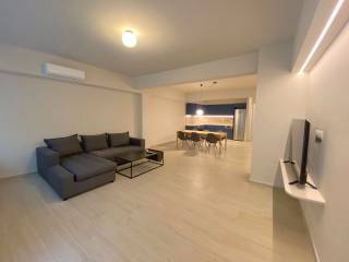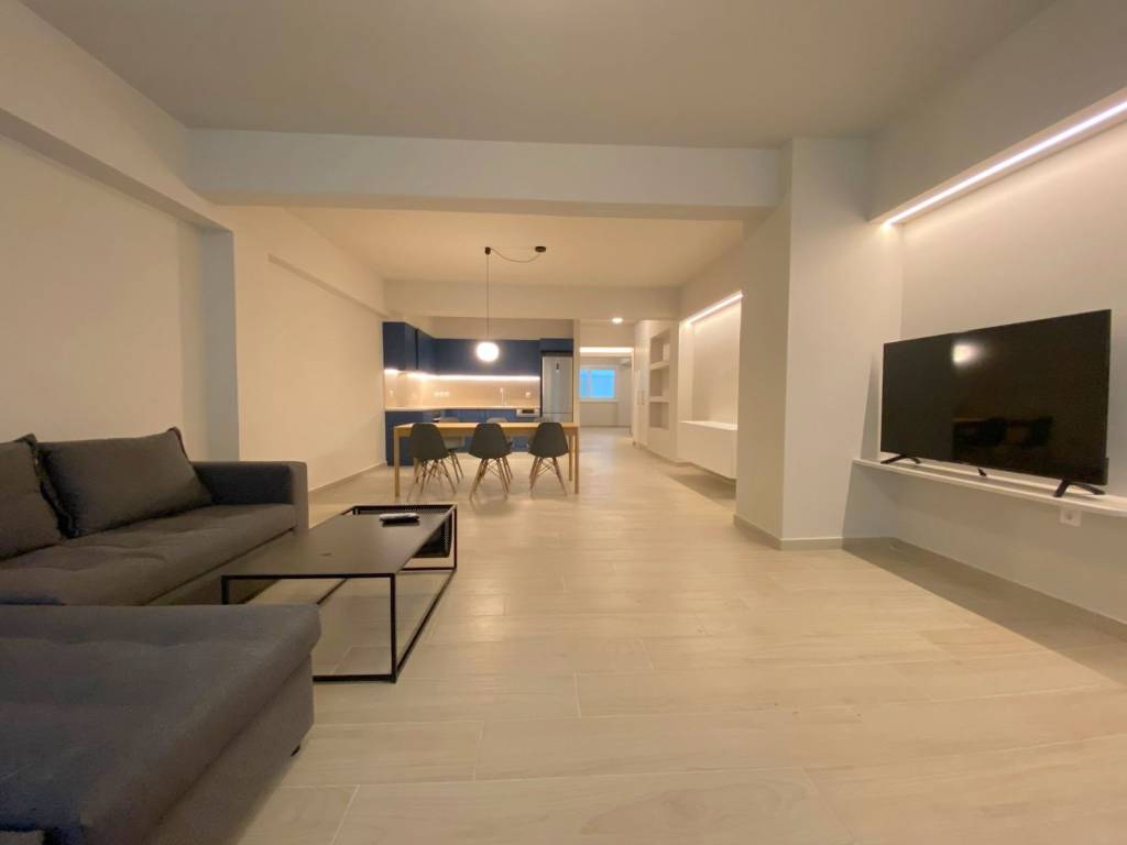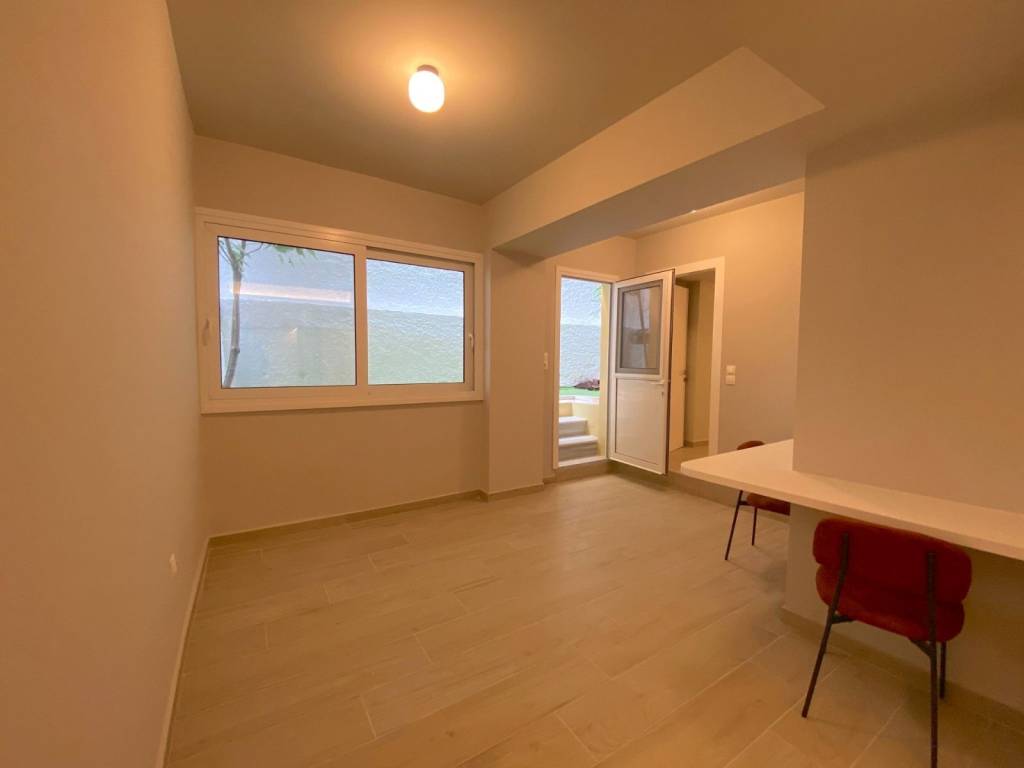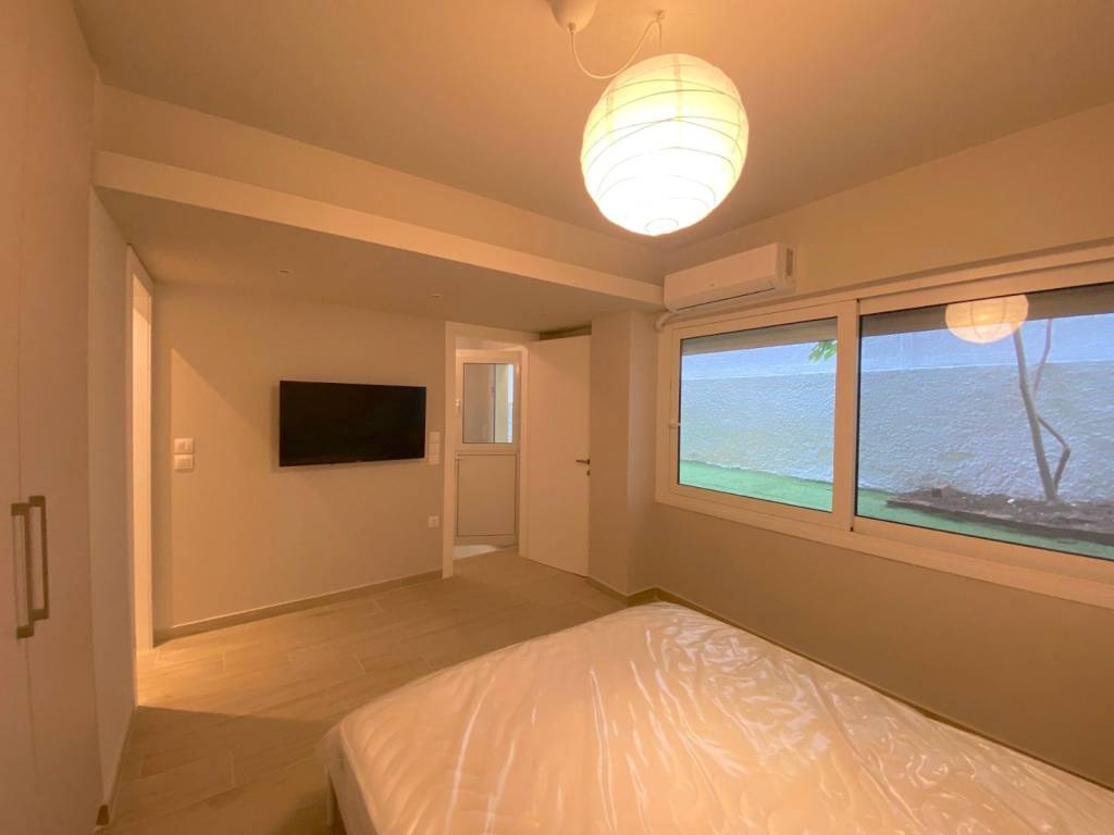 A bright apartment of 120 m2 located on the ground floor of a residential building. The apartment is fully renovated and consists of a spacious living room with an open plan kitchen, two bedrooms, two bathrooms and a beautiful backyard. Extra features include a security door, double glazed windows with aluminum frames, electrical shutters, three A/C units. It is fully furnished and equipped with all the electrical appliances. Golden Visa eligible