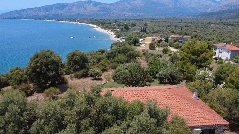 An exceptional property for sale! A seafront villa of 150 sq.m., located on a private plot of 10,000 sq.m., with direct access to a private beach and an impressive 70-meter frontage on the sea.