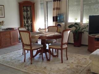 For sale is a four-room apartment, 105 sq m, in excellent condition, 2nd floor, penthouse with exclusive use of the roof and built in 2001. It has an open-plan kitchen, living room, dining room, three large bedrooms with built-in wardrobes, bathroom, autonomous heating, solar water heater, storage room, elevator, security door, parking, and a large terrace with unobstructed and unlimited views.