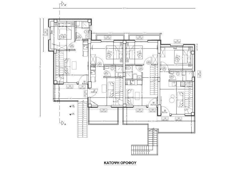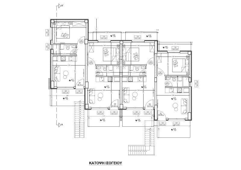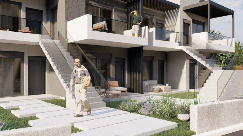 • 4 Ground floor apartments from 34,12sq.m. to 35,85sq.m, consisting of a living room with kitchen, 1 bedroom, 1 bathroom.