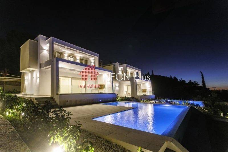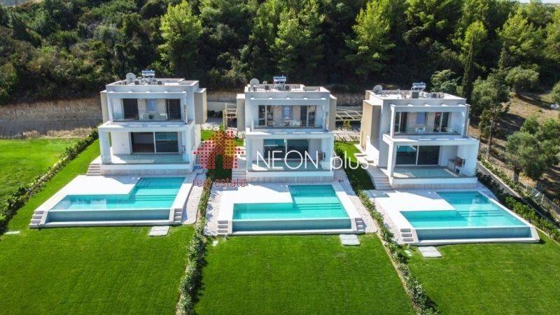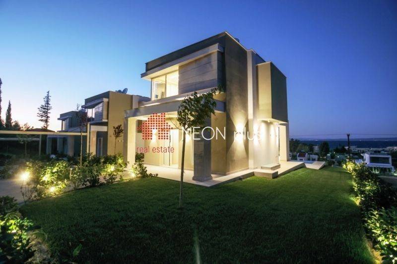 Property code: 1-501 - Pallini Pefkochori FOR SALE a luxury villa of total 175 sq.m with unlimited view to the sea . The 3 level villa consist of a large living