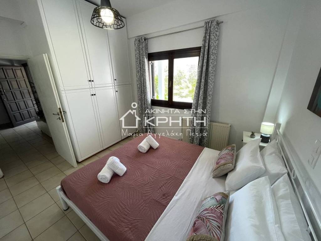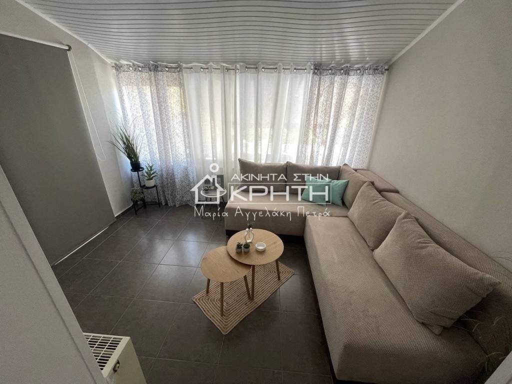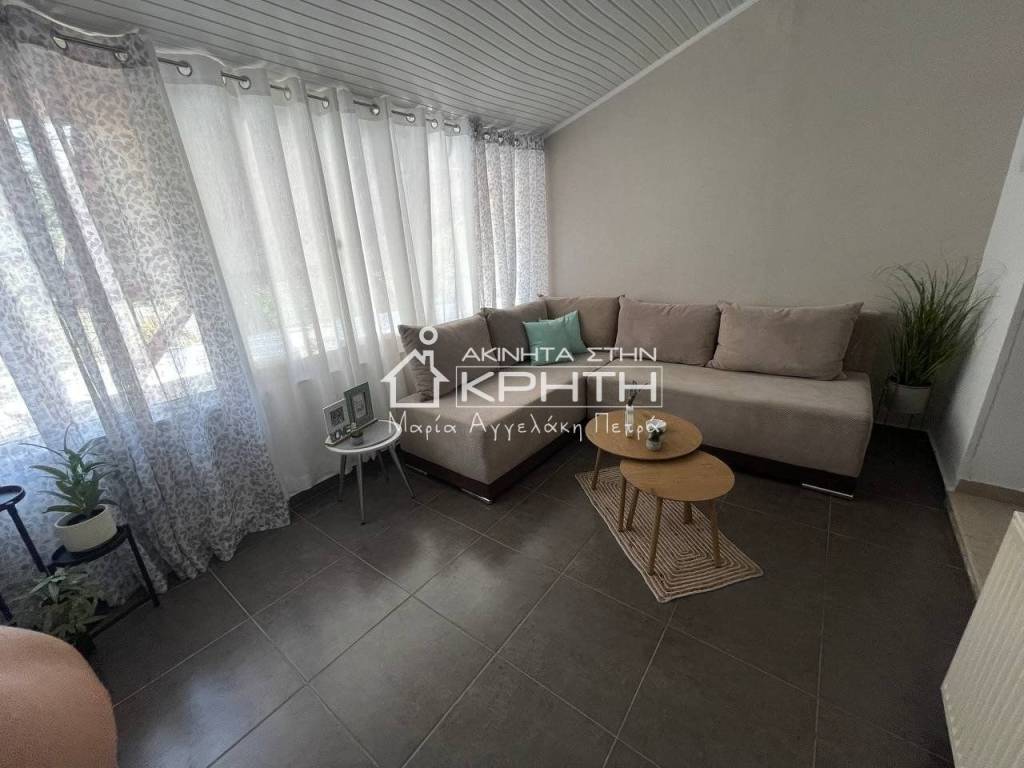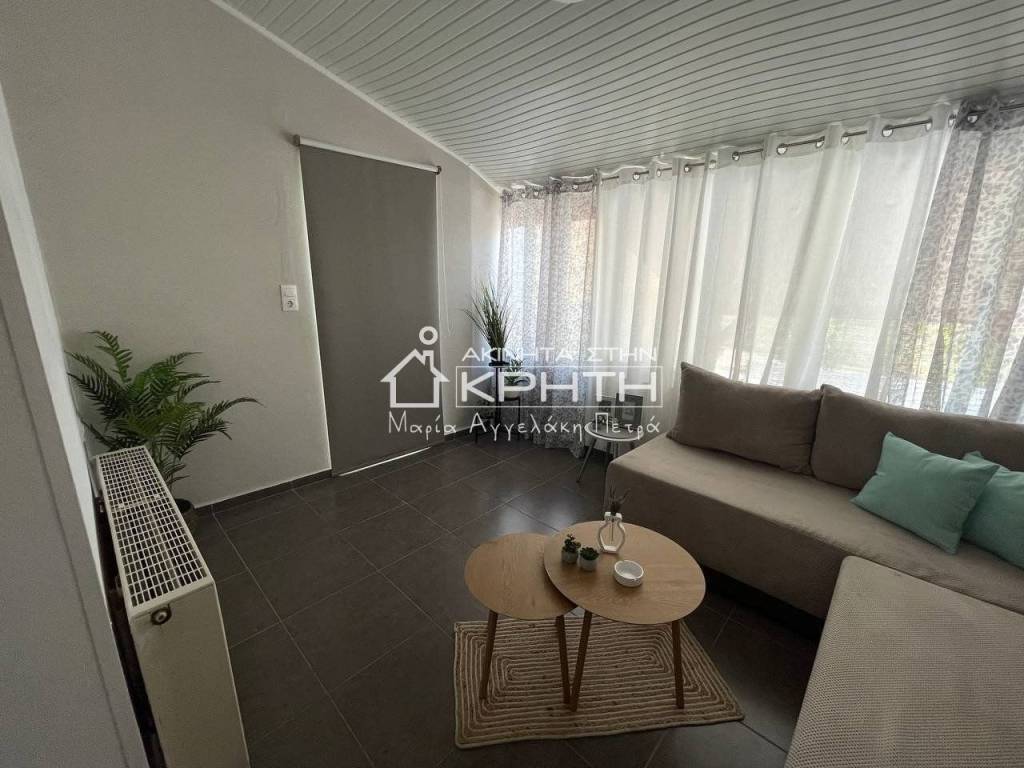Renovated detached house of 80 sq.m. in Peristeras, Ierapetra, in a quiet and beautiful location, ideal for permanent residence or holiday use. The house is bright, functional and autonomous, with stylish interior and exterior spaces that offer a high quality of life. It consists of a large open-plan living room and kitchen area with ergonomic design, two bedrooms, a spacious and bright bathroom, as well as an additional auxiliary living room area. It has full furniture and electrical appliances, autonomous oil heating, air conditioning, triple energy solar water heater and alarm system. The outdoor area includes a beautifully landscaped private garden and an exclusive parking space. Pets are allowed. The price includes water and internet consumption. An excellent proposal for those looking for a modern and comfortable home in a natural environment with direct access to Ierapetra. renovated, Veranda, Energy class Energy class H, With furnitures, Pets are allowed, View, Aluminum windows, Window net Window net, Alarm, Floor type TILE, Bright Bright Bright Bright