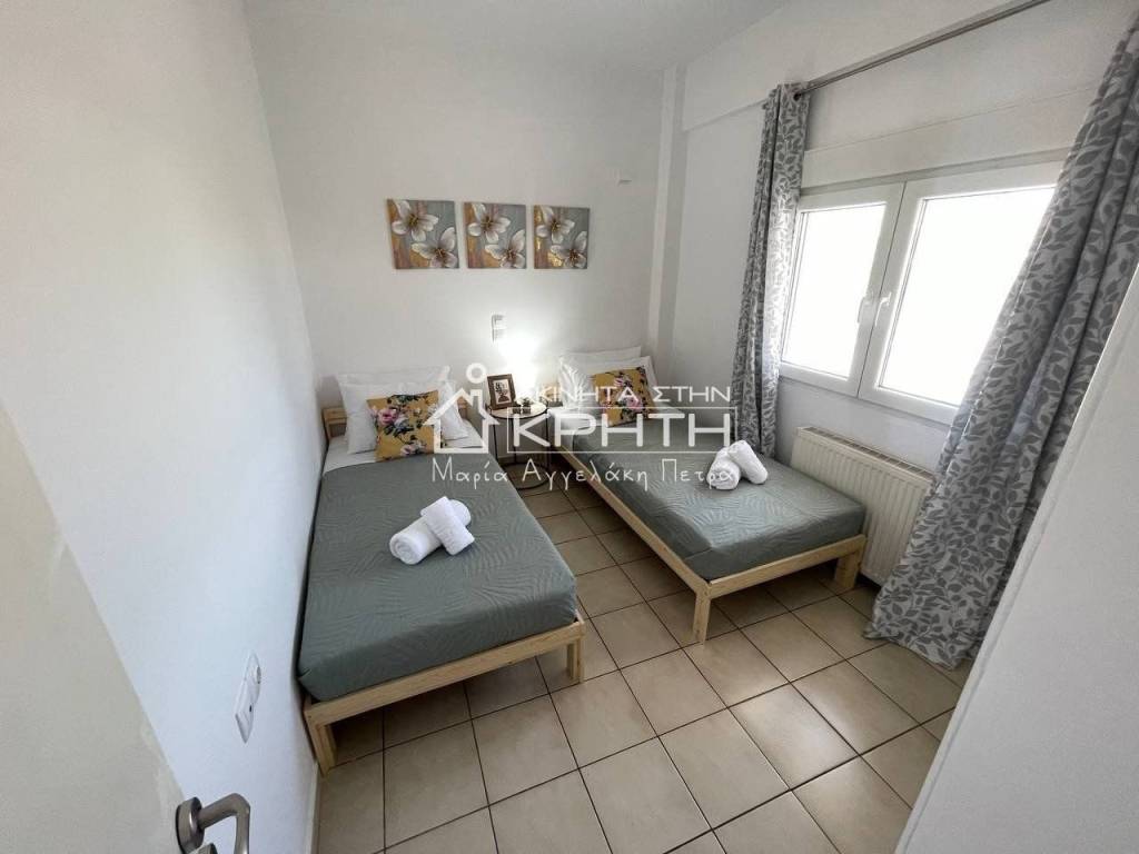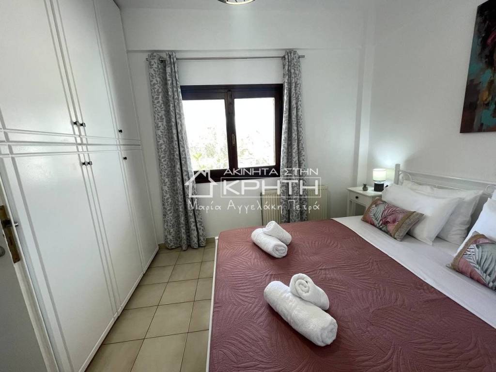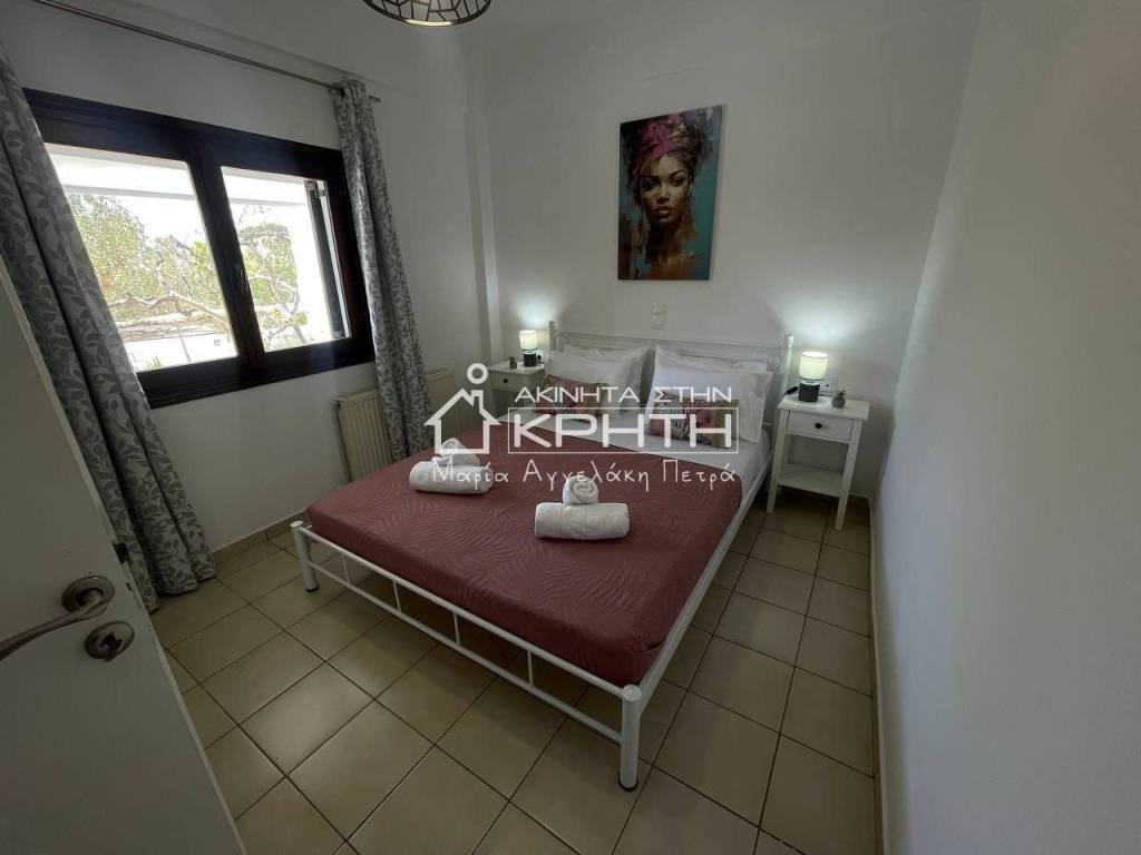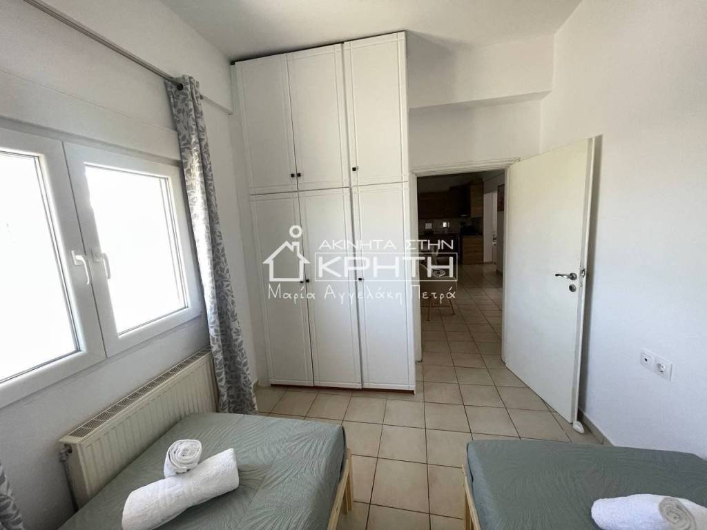 Renovated detached house of 80 sq.m. in Peristeras, Ierapetra, in a quiet and beautiful location, ideal for permanent residence or holiday use. The house is bright, functional and autonomous, with stylish interior and exterior spaces that offer a high quality of life. It consists of a large open-plan living room and kitchen area with ergonomic design, two bedrooms, a spacious and bright bathroom, as well as an additional auxiliary living room area. It has full furniture and electrical appliances, autonomous oil heating, air conditioning, triple energy solar water heater and alarm system. The outdoor area includes a beautifully landscaped private garden and an exclusive parking space. Pets are allowed. The price includes water and internet consumption. An excellent proposal for those looking for a modern and comfortable home in a natural environment with direct access to Ierapetra. renovated, Veranda, Energy class Energy class H, With furnitures, Pets are allowed, View, Aluminum windows, Window net Window net, Alarm, Floor type TILE, Bright Bright Bright Bright