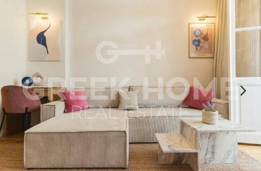 Thessaloniki - Apartment 80sqm fully furnished, bedrooms 2, 2nd, excellent condition, year built 1940, renovation year 2009, energy class C, living room, kitchen, 2 bathrooms, heating type: autonomous (natural gas), air condition, unobstructed view view, painted, storage space, balconies, built in appliances, wooden frames, double glazed windows, wood & tile floors, secure door, luxurious, eastern orientation, investment property, short term lease, close to sea (up to 100m).
