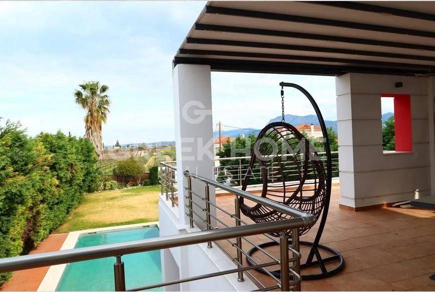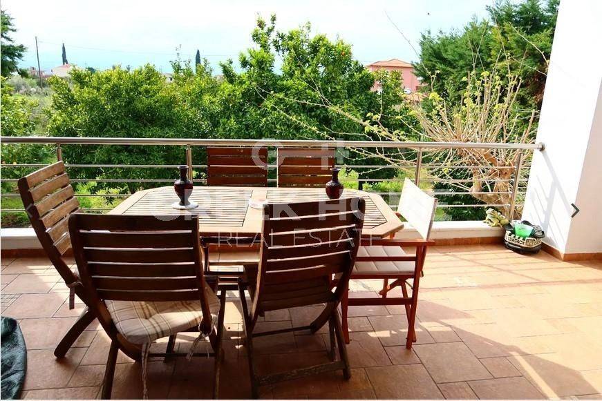 Assos - Lecheo, Assos - Detached House 450sqm plot 1500sqm, fully furnished, bedrooms 4, levels 3, semi-basement - ground floor - 1st, excellent condition, year built 2005, energy class A, 2 living rooms, hall, 2 kitchens, 4 bathrooms, 2 wc, heating type: autonomous (oil), parking open space, quiet, dual aspect apartment, luminous, unobstructed view, frontage, storage space, solar heater, fireplace, balconies, large balconies, tents, aluminum frames, double glazed windows, door screen, ceramic tiles floors, separate kitchen, without common charges, secure door, alarm, swimming pool, private pool, internal staircase, pets allowed, east-western orientation, close to national road (up to 100m).