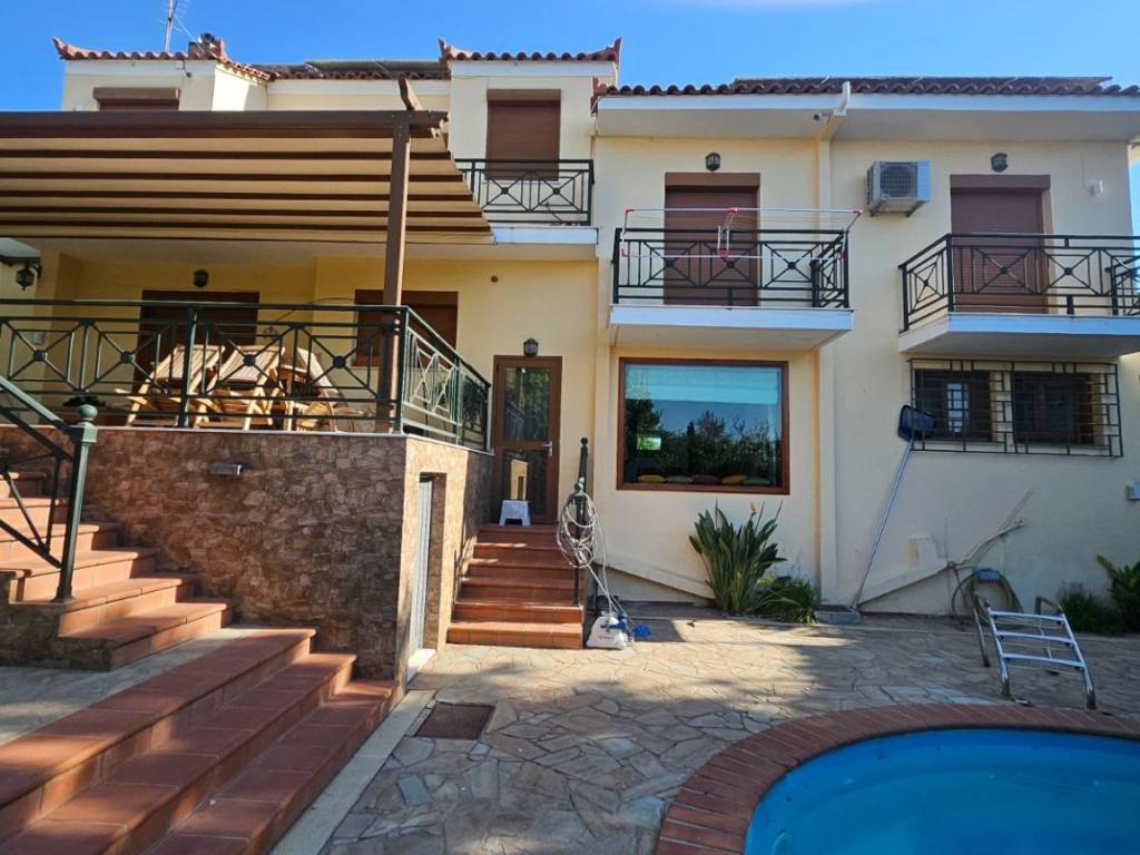 Located in a quiet area in thrakomakedones ,just before the main square and close to the central road nearby bus stop.pool 45 m 2 Private water drilling system and solar panels Internal garage with direct access to the house plus external garage,capacity for 5 cars Security cameras and double alarm system Surrounding lawn ,garden,2 automatic garage doors Plot dimensions: 33*35