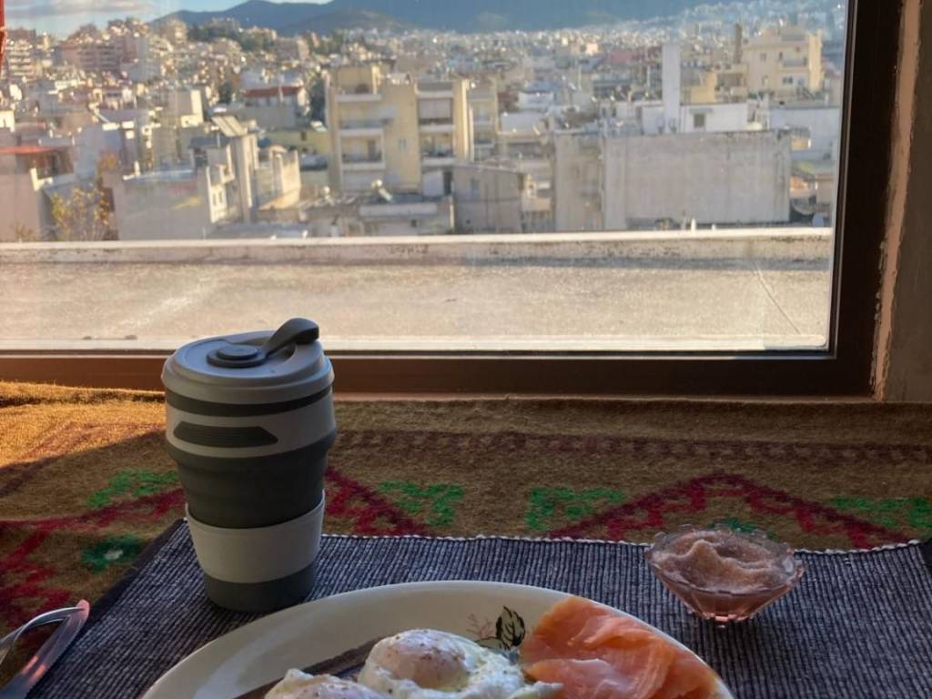Penthouse, 36 sq.m., open-plan. Located on Ilioupoleos Street at the level of Dafni. Renovated and furnished with only the essentials. Ideal for one person or a couple. Extremely bright, with an eastern view of Hymettus ridge, Lycabettus, and the Acropolis. Features: solar water heater, air conditioning, washing machine, wood stove, small gas oven with two burners. Built-in wardrobes, a very large bookshelf, sofa bed, and some small furniture. Situated between Aghios Ioannis and Dafni metro stations on the red line. There is a bus stop to the city center right across the street. Parking in the area is difficult but not impossible. The building’s elevator goes up to the 4th floor, with the 5th floor accessible by stairs. Access to a shared rooftop terrace. Rent 500€ per month. Please better send text or whats app message ✌