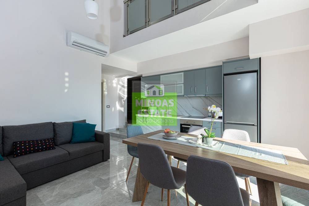 Therissos, Vamvakopoulos: A newly built new 100sq.m. Luxury, on the 3rd floor with 2 -level elevator with individual heating (air conditioning). It consists of 2 bedrooms, 1 of which are a master, 1 kitchen, 1 living room, and 2 bathrooms. It is fully furnished, equipped, with electrical appliances, built in 2022, painted, near SCHOOL-PHARMAKIA-SPAPER Market and features nice views, aluminum windows with triple glazing, armored door, air conditioning, energy class A+. It is ideal for workers. Free amenities: Internet, water. Price 1,000 € (available from 1/11/2025-31/3/2026) renting by month. | Property Code: #E -00797 (C3)