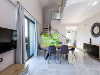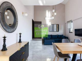 Therissos, Vamvakopoulos: A newly built new 100sq.m. luxury, with a 12m facade. On the 3rd floor with 2 levels with individual heating (air conditioning). It consists of 2 bedrooms, 1 of which are a master, 1 kitchen, 1 living room, and 2 bathrooms. It is fully furnished, equipped, with electrical appliances, made in 2022, painted, near SCHOOLS-PHARMAKIA = supermarket and features nice views, aluminum windows with triple glazing, armored door, air conditioning, energy class A+. It is ideal for workers. Free amenities: Internet, water. Price 1,000 € (available from 1/11/2025-31/3/2026) renting by month | Property Code: #E -00798 (C2)