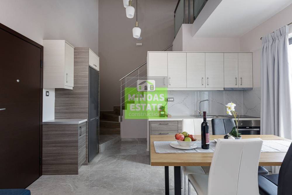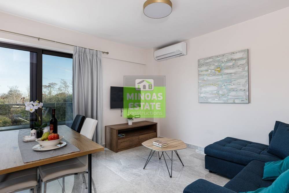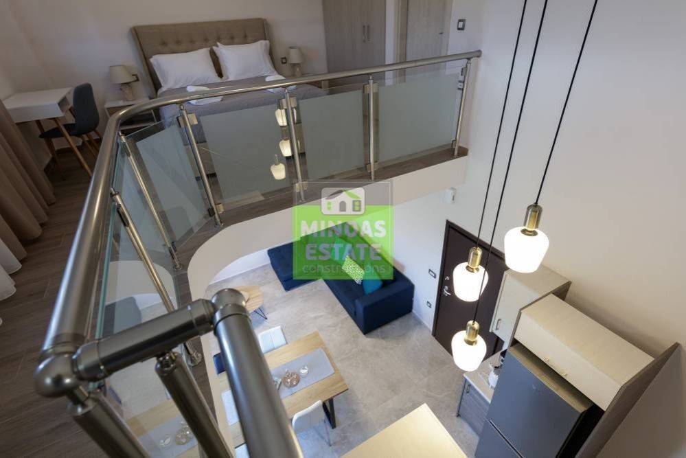Therissos, Vamvakopoulos: A newly built new 60sq.m. Luxury, facade on the 1st floor of 2 levels with individual heating (air conditioning). It consists of 1 bedroom, 1 lounge, and bathroom. It is fully furnished, equipped, with electrical appliances, built in 2022, painted, near SCHOOL-PHARMAKIA-SPAPER Market and features nice views, aluminum windows with triple glazing, armored door, air conditioning, energy class A+. It is ideal for workers. Free amenities: Internet, water. Price 800 € (available from 1/11/2025-31/3/2026.) Rent to the month. | Property Code: #E -00795 (A6)