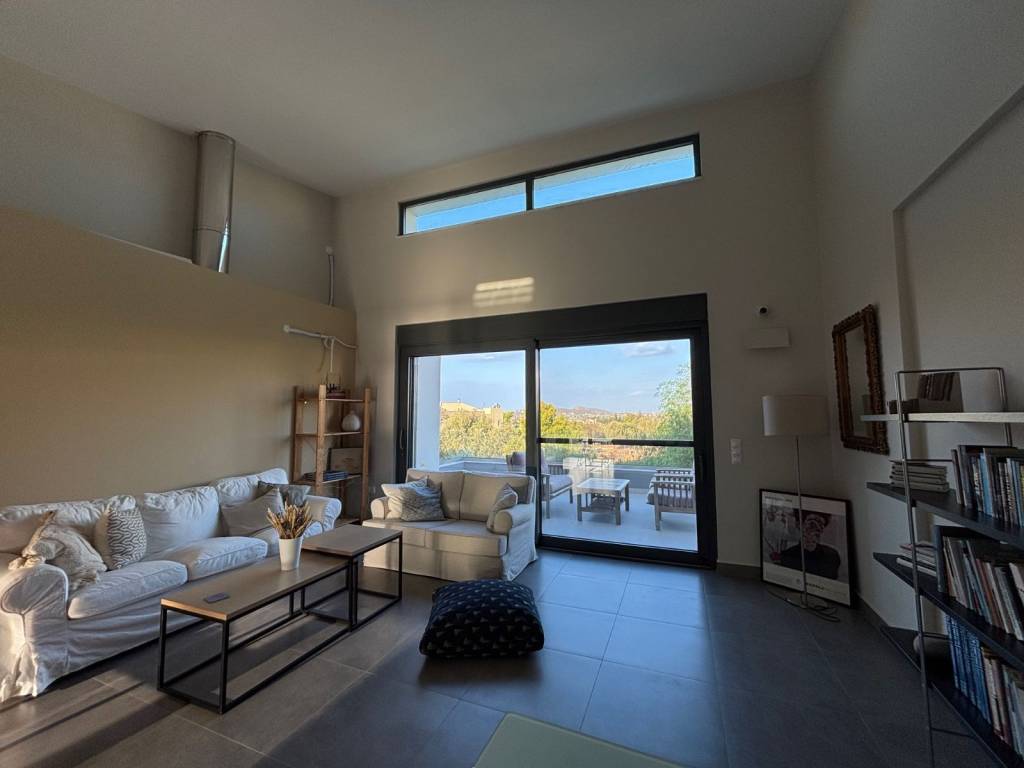 Νεόδμητο διαμέρισμα εξαιρετικής κατασκευής 1ου ορόφου, επιφανείας 110τμ., πανταχόθεν ελεύθερο με μεγάλα μπαλκόνια και θέα , σε οικόπεδο 965τμ. . Αποτελείται από σαλόνι με ενιαία κουζίνα , 2 υ/δ, (το ένα master) 2 μπάνια. Διαθέτει κλιματισμό , κουφώματα αλουμινίου με διπλά ενεργειακά κρύσταλλα , σίτες, ηλεκτρικά ρολά, ηλιακό θερμοσίφωνα , εντοιχισμένες ντουλάπες, πόρτα ασφαλείας , σύστημα συναγερμού και ανοιχτή θέση parking . Βρίσκεται σε μοντέρνα διπλοκατοικία, σε ήσυχη και όμορφη γειτονιά τής περιοχής.