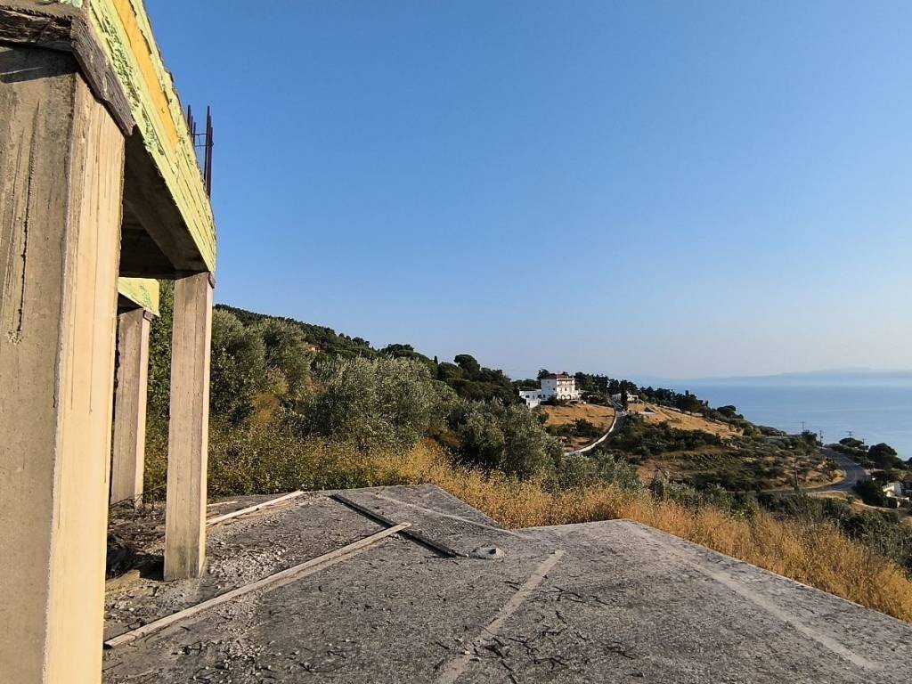Exceptional Investment Opportunity with Panoramic Views in Glossa, Skopelos! Acquire a property with priceless views and unlimited possibilities, in a prime location, just before the entrance to the traditional village of Glossa, Skopelos. This is a three-story building with a total area of 130 m² (concrete), built on a large plot of land that guarantees privacy and tranquility. Property & Land Features The property is at an advanced stage of unfinished construction (concrete), as shown in the photos, giving the future buyer the opportunity to complete the interior design exactly according to their personal needs and taste. The total build area of 130 sq.m. is divided into three separate levels, ideal for commercial use or large family use: Ground floor (57 sq.m.): A spacious area, ideal for an apartment with direct access to the garden or for the main common areas of the residence (living room, kitchen). First floor (43 sq.m.): Ideal level for bedrooms or as a self-contained accommodation unit. Self-contained Studio (30 sq.m.): An additional, independent space that can be used for hospitality or to maximize investment returns. The building is surrounded by a large plot of 1,200 sq.m., part of which is already landscaped with ready-made parking spaces, immediately solving a practical issue of island living. The Magic of the View The ultimate advantage of this property is its unobstructed, panoramic view that takes your breath away. From every floor, and especially from the highest level, you can enjoy: 1. The Endless Blue: Daily views of the Aegean Sea. 2. Skiathos: The view extends to the island of Skiathos, offering a magical spectacle, especially at sunset. 3. The Picturesque Village: View of the traditional settlement of Glossa Skopelos, with its characteristic white houses "hanging" on the hillside. Investment Potential The structure of the three independent units (57 sq.m., 43 sq.m., 30 sq.m.) makes the property an excellent investment for tourist exploitation. The future buyer can: * Complete the work and create three independent apartments/studios for short-term rental (Airbnb). * Convert the main residence (100 sq.m.) and exploit the independent studio (30 sq.m.). This is a rare opportunity to create your own luxury residence or a profitable business in one of the most beautiful and sought-after locations on Skopelos. Don't miss the chance to invest in your vision in this unique location! Skopelos topos real estate www.skopelostopos.gr